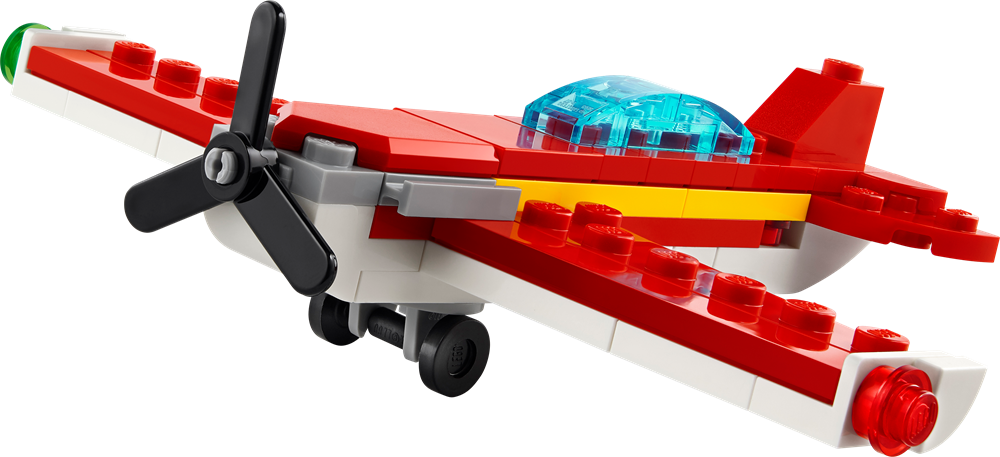 Med dette fantastiske 3-i-1-legesæt kan fans bygge et rødt fly og derefter bruge de 51 elementer til at forvandle det til et rødt jetfly eller en rød speedbåd, som de kan lege med og udstille.