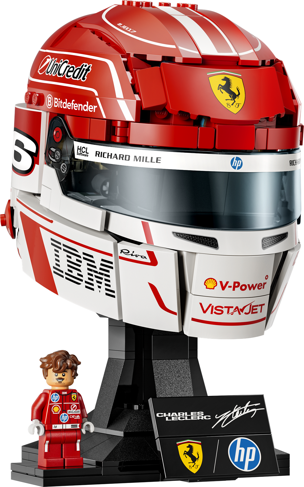 Køretøjsfans kan slippe fartglæden fri, når de bygger denne yderst detaljerede gengivelse af en F1®-hjelm med LEGO klodser. Hjelmen i Ferraris berømte røde Rosso Monaco-farve har grafik med Charles' kørernummer og andre autentiske detaljer. Sættet omfatter en minifigur af Charles Leclerc og en brandet plade med hans signatur. Når fans har krydset målstregen, kan de stolt udstille LEGO hjelmen som sportsinspireret værelsespynt. Byggesættet er en god fødselsdagsgave til teenagere og F1®-fans.