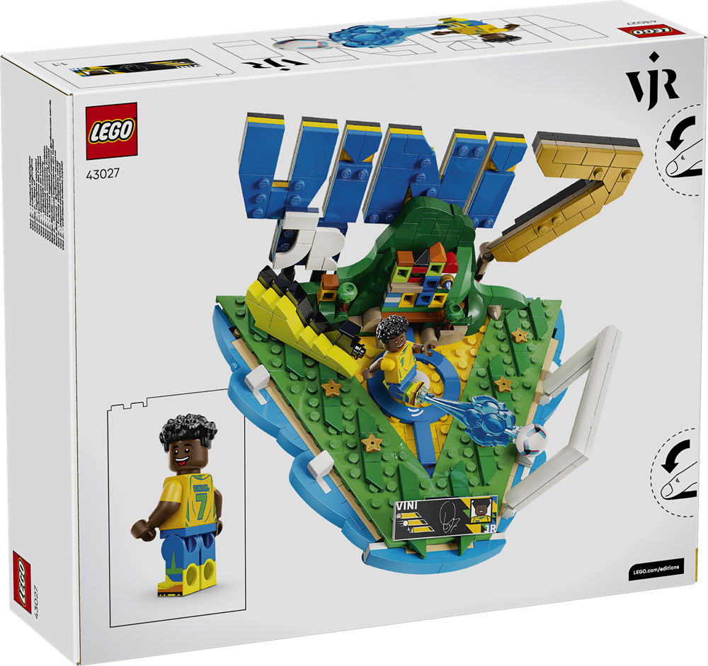 Fodboldfans kan fejre den unge sportslegende, når de samler udstillingsmodellen og samlerobjektet med mange referencer til Vinicius Junior. Basen i det brasilianske landsholds farver rummer Vinicius' navn og har et stort 7-tal, som er hans trøjenummer. Sættet omfatter også et samlerobjekt af en faktaplade med hans spillerstatistik og underskrift, samt en minifigur af Vini Jr., som giver udstillingen liv. Den samlervenlige Vini Jr.-merchandise bliver til et sejt indretningselement med fodboldtema, som fans stolt kan vise frem.