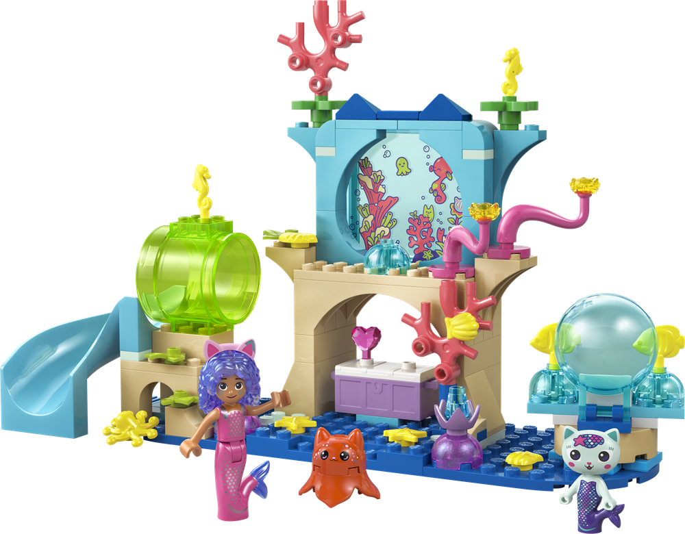 Dyk ned i Gabbys undervandseventyr med Havkat og den flerfarvede Gople! Gabby er iført sit havfruekostume og er klar til at udforske det kulørte akvarium med masser af skaller, planter og bedårende havdyr. Leg med vennerne, når de plasker ned ad rutsjebanen og flyder inde i en kæmpe boble, led efter skaller, og flyt korallerne for at afsløre en skjult skattekiste – ligesom i filmen!