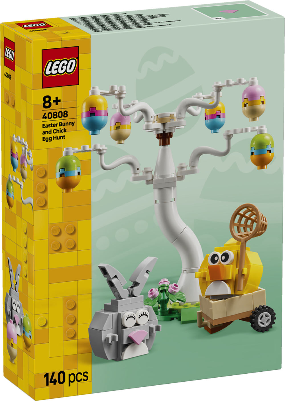 Byggesættet er en sjov påskegave til voksne, børn og dyrefans og er et ideelt sæt, som familien eller venner kan bygge sammen. Saml træet, vognen, LEGO legetøjsfigurerne af fugl og kanin, og byg og placer derefter de farvestrålende æg på træets grene, så dyrene kan finde dem. Hjælp kyllingen og påskeharen med at indsamle æggene med nettet, og opbevar dem i vognen.