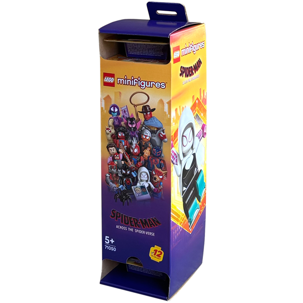 Spider-Man-legetøjet indeholder en samler-minifigur som overraskelse i hver æske, og der er i alt 12 at samle på: Miles Morales/Spider-Man, Miguel O'Hara/Spider-Man 2099, Gwen Stacy/Spider Gwen, Hobie Brown/Spider-Punk, Pavitr Prabhakar/Spider-Man India, Miles G. Morales/Prowler, Peter B. Parker/Spider-Man og May "Mayday" Parker, Margo Kess/Spider-Byte, Peter Parker/Werewolf Spider-Man, Patrick O'Hara/Web-Slinger, Petra Parker/Cyborg Spider-Woman og Charlotte Webber/Sun-Spider.