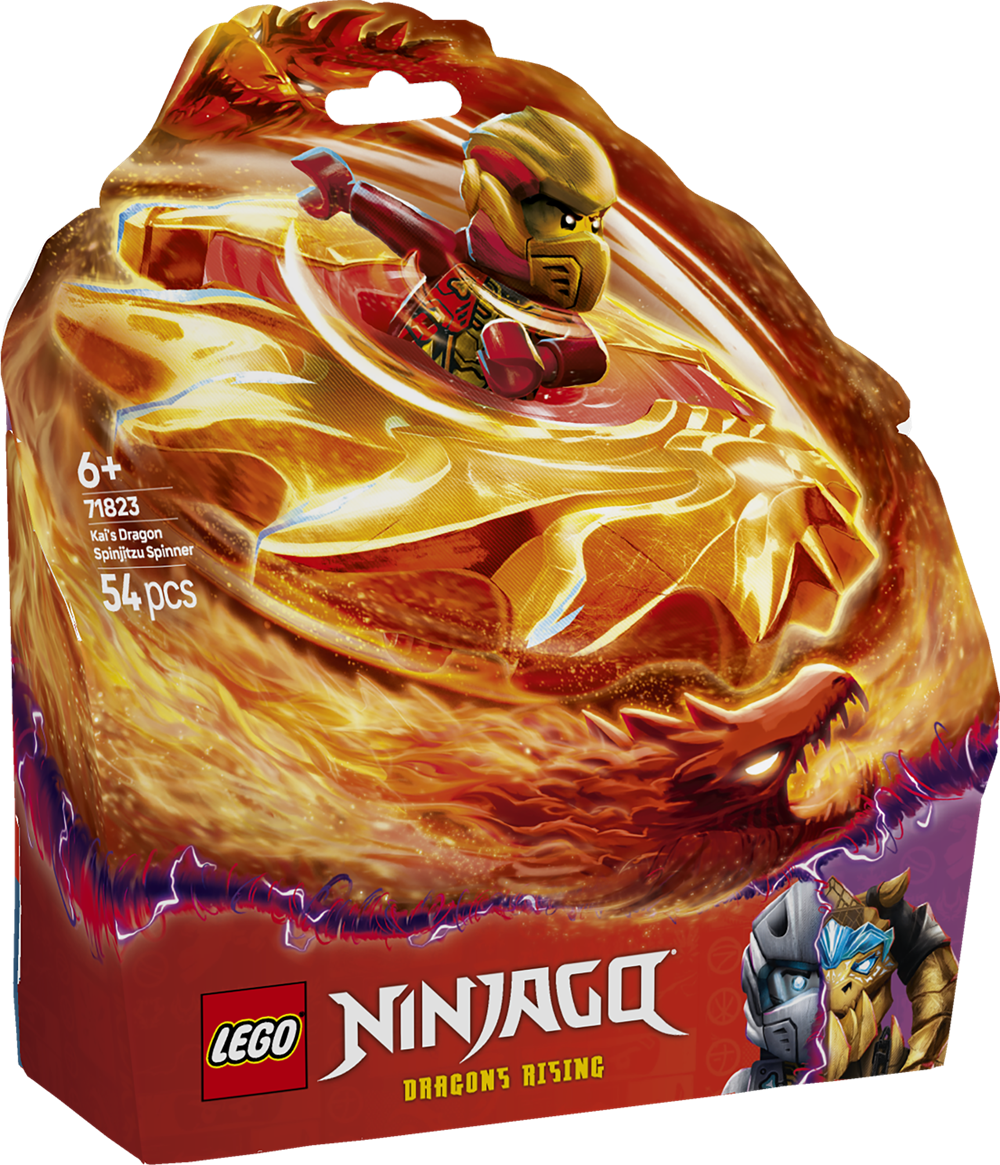 Gør dig klar til at sende Kai afsted i en actionfyldt kamp mod en skurkagtig dragonisk spejder! Anbring ildens mester i drage-Spinjitzu-spinneren, og tryk på affyringsknappen. Se på, når han bliver sendt afsted i et hurtigt spin for at besejre sinonde modstander. Når spinneren rammer sit mål, kan der flyve 2 kraftelementer af. Kai skal sikre sejren for at redde den nye NINJAGO®-verden!
